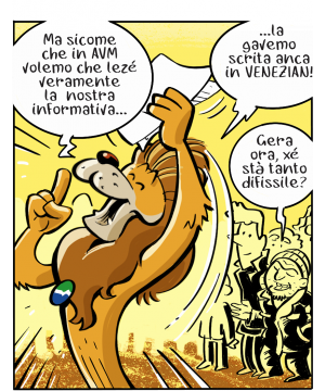 Non solo, sul sito dell’azienda è disponibile anche un’informativa privacy in veneziano e a fumetti.