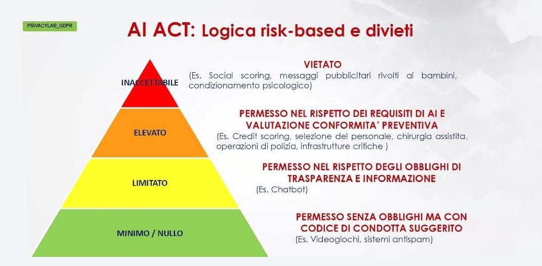 L’AI Act si basa sulla logica del rischio: più alto è il rischio, più il divieto è stringente.